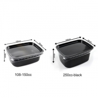 กล่องอาหาร กล่องใส่อาหาร พลาสติกและฝาปิด ขนาด 150ml /250ml วัสดุ : พลาสติก,ฝาพลาสติก สี : สีดำ, สีใส การใช้งาน : สำหรับใส่อาหาร ไก่ทอด ยำ ข้าว